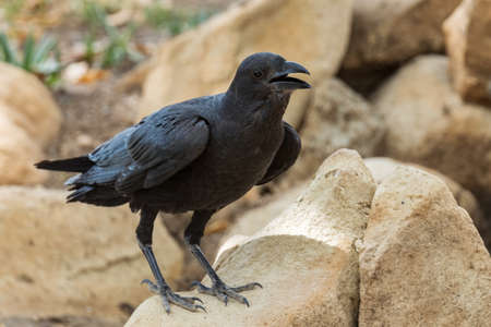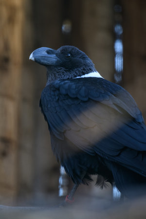 White-necked raven in an outdoor aviary.