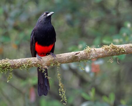 Red and black endemic colombia bird perched on a branch