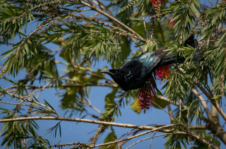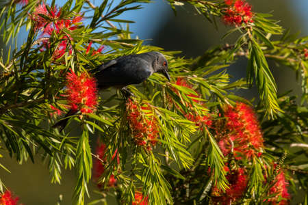 red winged starling standing on the rock on Table mountain in Cape Town, South Africa