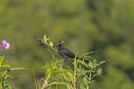Smooth Billed Ani in a Tropical Plant in Pantanal National Park in Brazil
