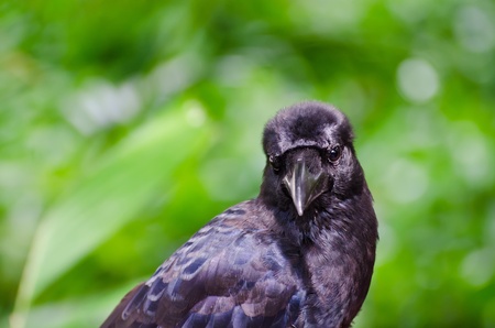 close-up portrait of a curious black bird