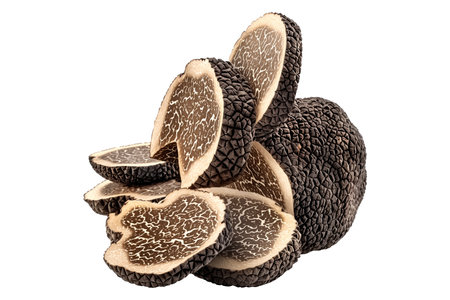 Fresh black truffles isolated on white transparent background, great for culinary and gourmet themes.