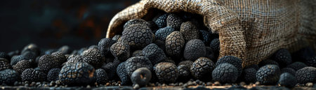 Realistic photo of a bunch of black truffle. top view vegetables scenery