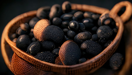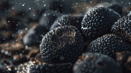 Black wild summer truffles close up family tuberaceae botanical modern high quality big size background print kitchen home decoration