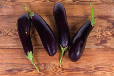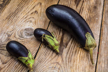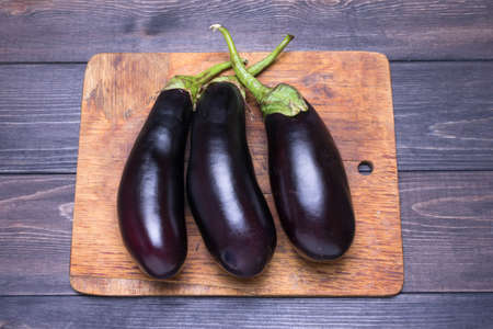 Purple Eggplant. Fresh purple eggplants on a wooden background