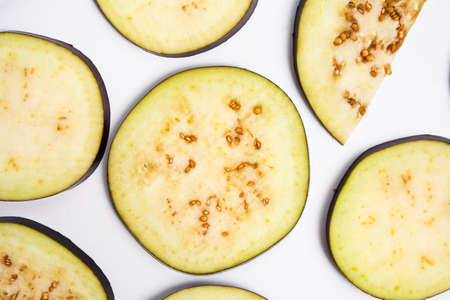 sliced eggplant on a wooden cutting board. healthy vegetable concept for diet.