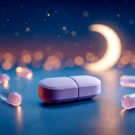 Vitamin pills with crescent moon on dark background. 3d rendering