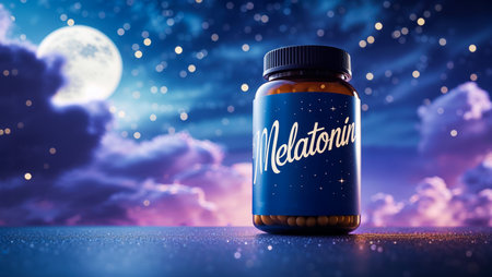 Container with inscription melatonin at night, creative design