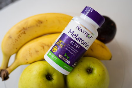 Tarragona, Spain - October 03, 2022: Melatonin tablets for the treatment of sleep problems.