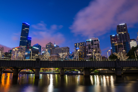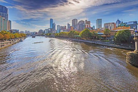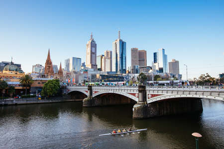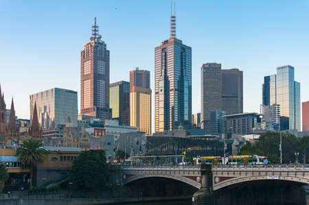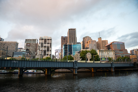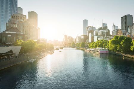 Melbourne cityscape with Yarra river during the sunrise in Victoria state of Australia. Melbourne is the capital city of Victoria, and Australia's second-largest city.