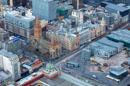 Melbourne, Australia : April-04-2015 : High angle view of Flinders street station view from the top of Eureka tower the highest buildings in Melbourne, Australia.