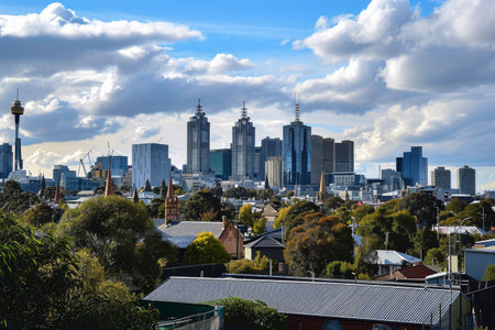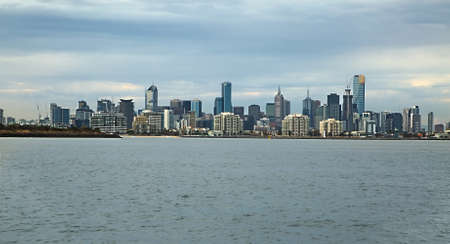 Melbourne, Australia - April 1, 2022: Cloudy view of Melbourne CBD skyline.