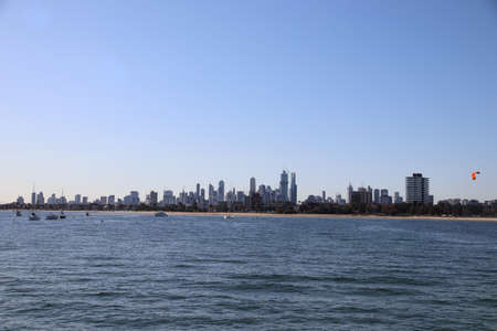 Melbourne, Australia - March 2, 2019: View of the Melbourne skyline from Point Ormond in the inner eastern bayside suburb of Elwood.