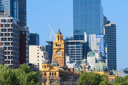 Melbourne, Australia - April 18, 2017: Melbourne Central Business District cityscape with historic Princes Bridge on the foreground