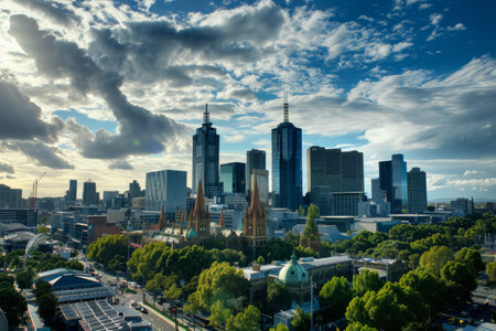 Melbourne, Australia - April 1, 2022: Cloudy day view of Melbourne CBD.