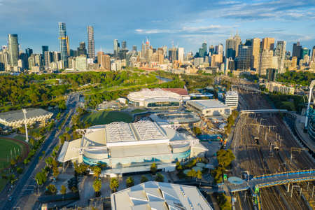 Melbourne, Australia - Nov 15, 2020: Aerial photo of Melbourne Park. It is the home of the Australian Open Grand Slam tennis tournament.