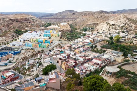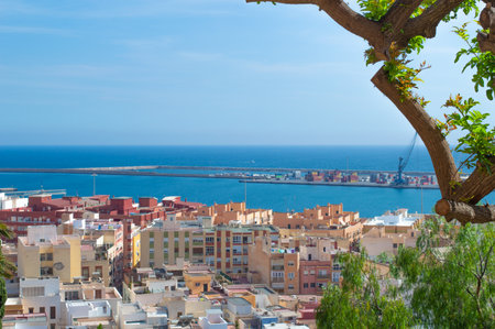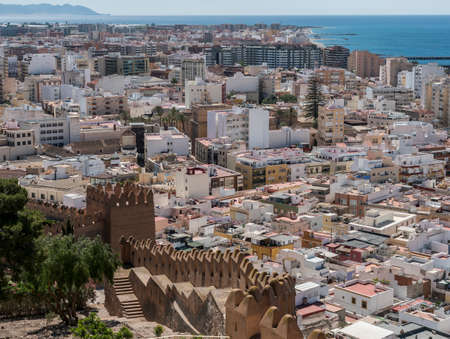 Almeria, SPAIN - May 20: View from the fortress of Moorish houses and buildings along the port of Almeria, Andalusia, Spain