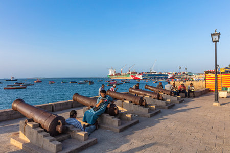 Stone Town , Zanzibar-February 28, 2019 : people enjoying the Stone Town waterfront promenade