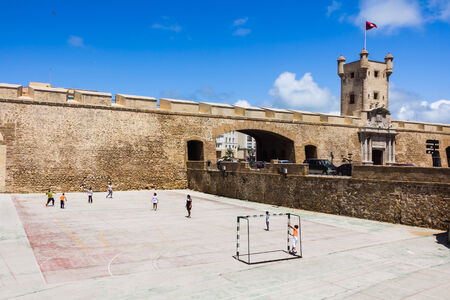 Cadiz, Spain - 19th May 2012: Teenagers playing football near Las Puertas de Tierra, Cadiz City Gate
