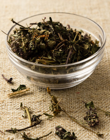 Dried herbal tea of Agrimonia eupatoria or common agrimony. Plant also known as church steeples or sticklewort. medical plant. Used in alternative medicine.