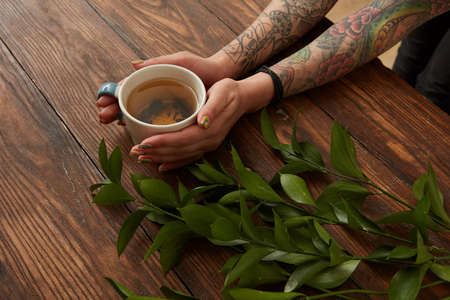 Female hands with hot tea