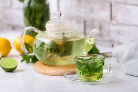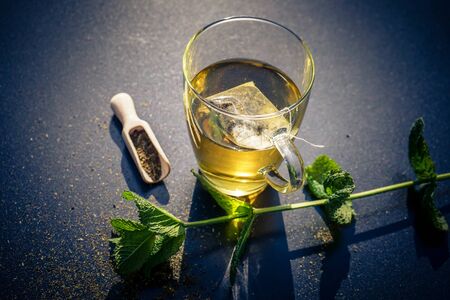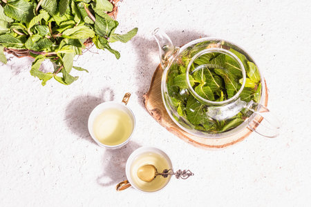 Teatime with green Fresh Peppermint leaves Mentha piperita