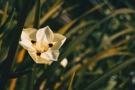 Close-up of a white flower of dietes bicolor with an unfocused background