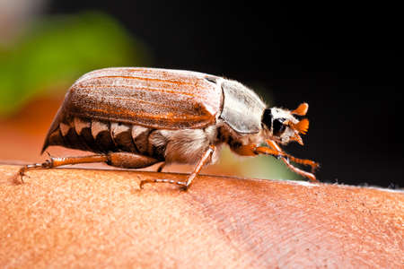 Amazing view of cockchafer beetle. Extreme close up. Shallow DOF