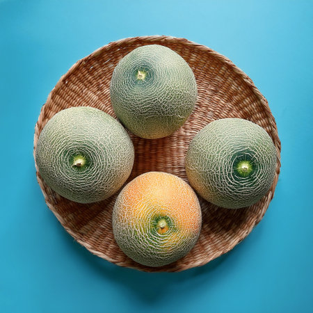 Cantaloupe Fruit, isolated on a pastel blue