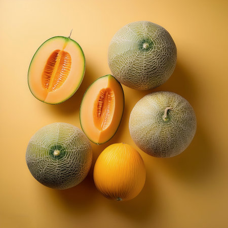 Cantaloupe fruits, isolated on a pastel yellow