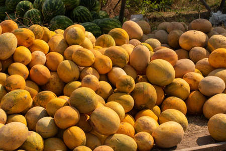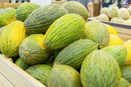 Melons ripe on the market counter-harvest season