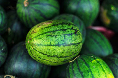 pile of ripe watermelon after harvesting, ready to sell in local market