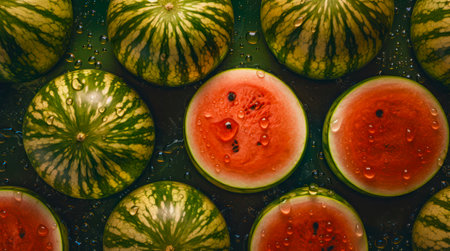 Summer Fruits Vibrant Slices of Fresh Watermelon, Close-up, Flat Lay for Food Background