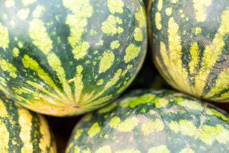 Group of fresh ripe green watermelons background