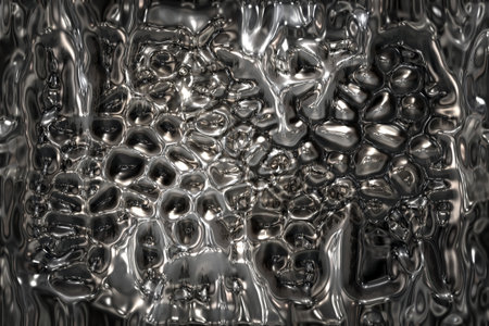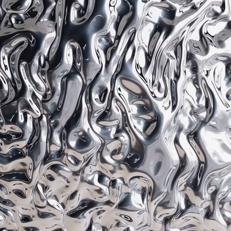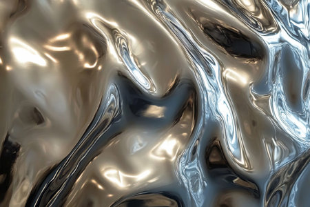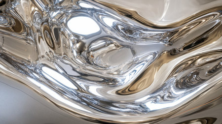 Captivating metallic surface showcasing fluid-like reflections and organic shapes, embodying modern artistry with a shiny and elegant finish.