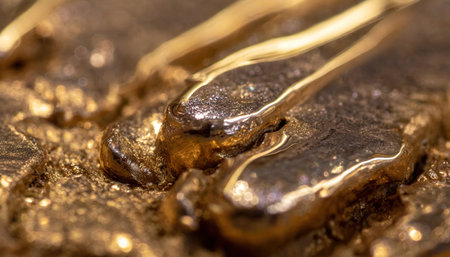 Abstract background with molten liquid metallic substance of golden color. Generative AI.