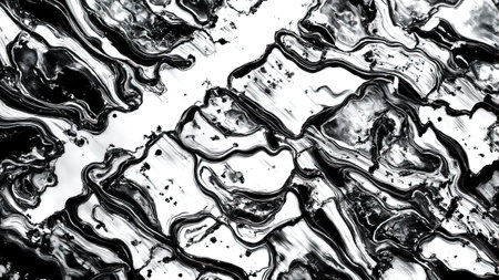 Explore the captivating beauty of this black and white abstract texture, showcasing fluid lines and a shiny finish, perfect for artistic backgrounds and design projects.