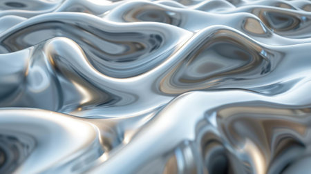 Elegant Flowing Silver Metallic Waves with Shimmering Texture and Glossy Finish for Modern Design