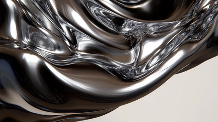 A mesmerizing abstract design featuring metallic textures with fluid, glossy shapes and reflections