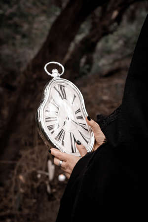 A stylized melting clock symbolizes the fluid nature of time, distorting reality and timelessness. A surreal visual metaphor for time concept.