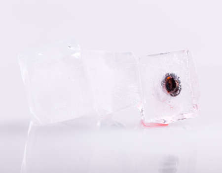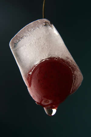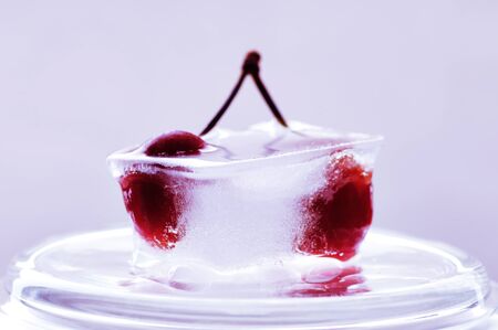 Red cherry frozen in the ice cube.