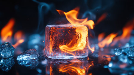 Burning ice cubes, fire and ice.