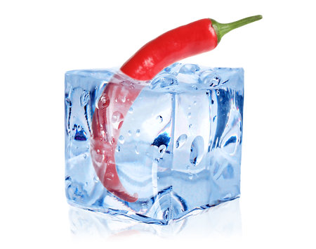 chili pepper in melting ice