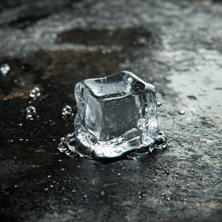 Ice cube on a wet table studio shot