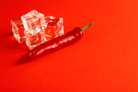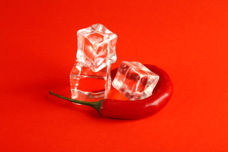Ice cubes and chili pepper on color background. Sex concept