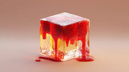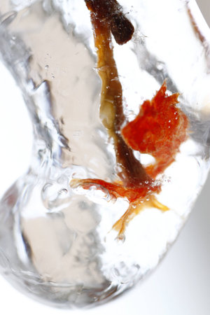 red physalis frozen in a block of ice, symbolizes patriotic ideas in creative and abstract photography