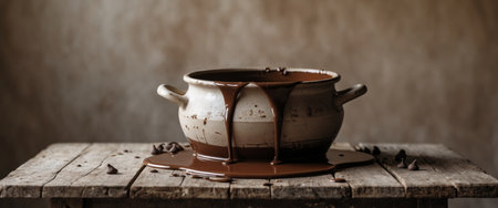 AI Generated. Rustic Kitchen Scene with Melted Chocolate in Pot