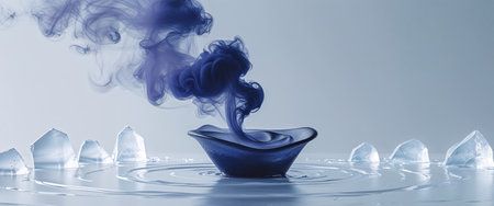 AI Generated. Mesmerizing indigo smoke over crystal ice background for creative designs