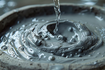 A close-up view of water being poured into a bowl, creating mesmerizing ripples and bubbles. The scene captures the serenity and beauty of liquid in motion, emphasizing purity and tranquility in a domestic kitchen setting.