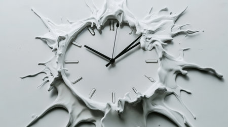A striking white clock melts into form, showcasing a creative interpretation of time. Its minimalist design adds elegance to any space, perfect for modern decor.